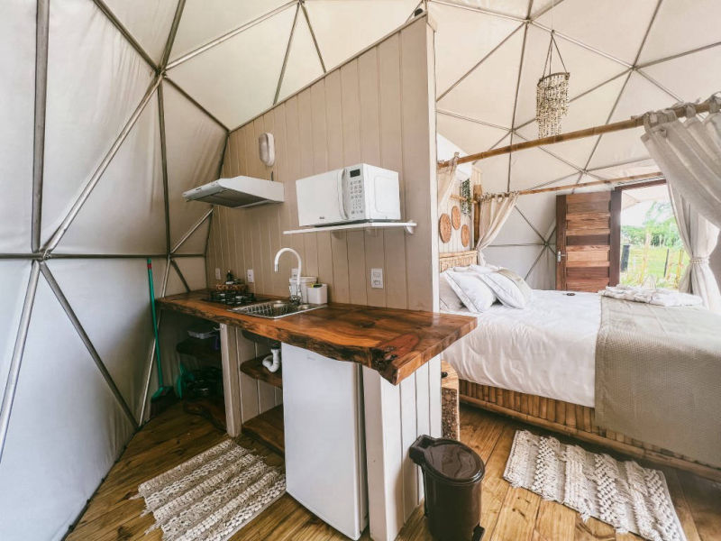 Aqui você tem o melhor do camping e dos hotéis de luxo. Muita natureza e bastante conforto.