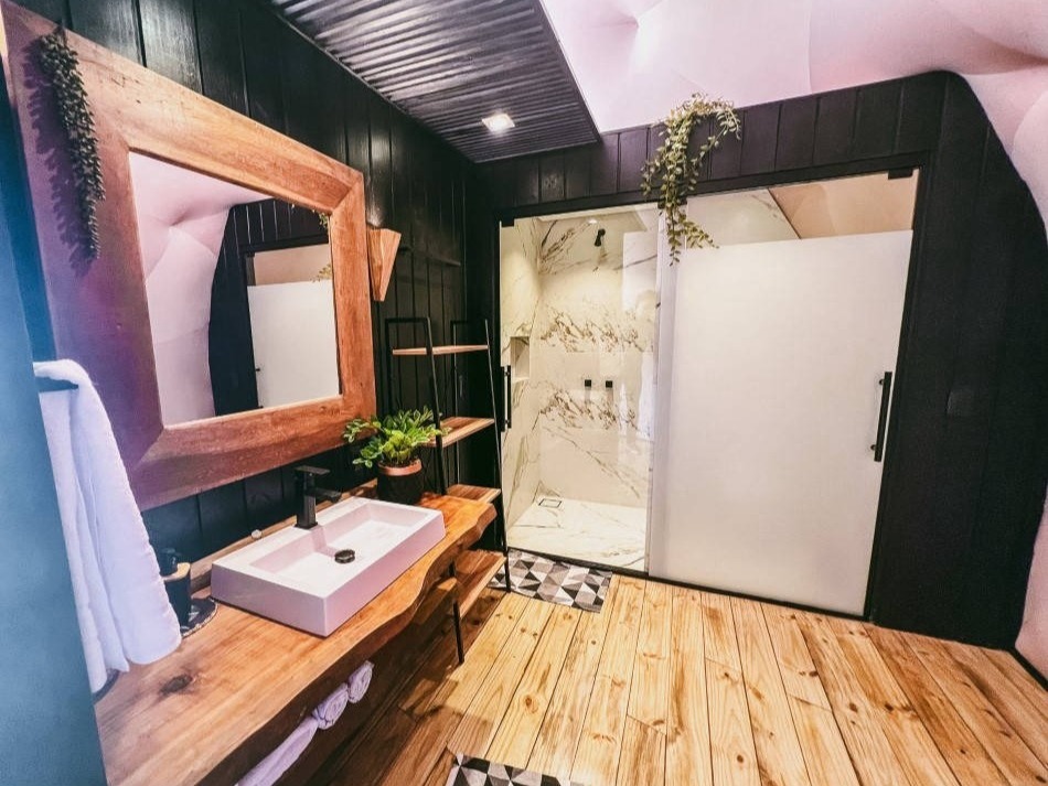 Sua atmosfera conta com um ofurô privado com cromoterapia e hidromassagem, uma decoração no estilo Boho. Num ambiente equilibrado com a natureza, proporcionando uma experiência única e exclusiva.