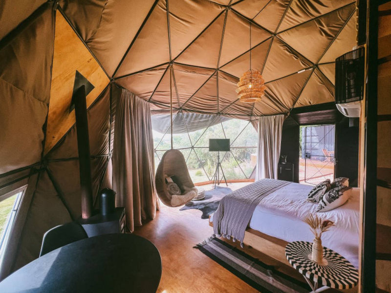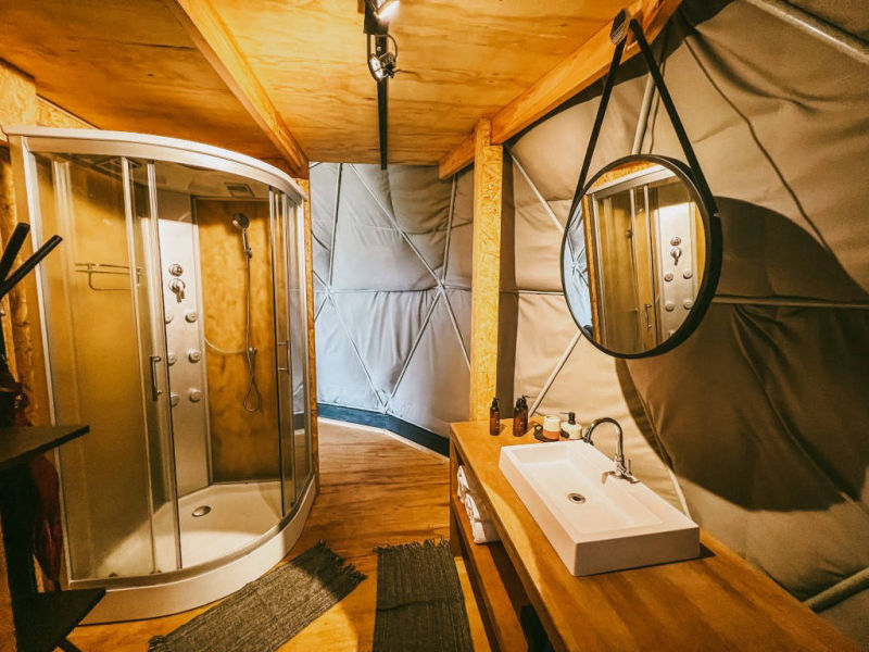 º 8 Espheras, cabanas no estilo domos geodésicos;