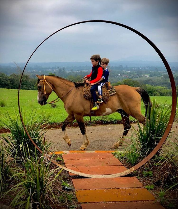 Servimos no chá da tarde waffle com doce de leite, Nutella e mel (servido no galpão entre 16-17 horas). Depois desfrute da vista para a pedra do cachorro (morro do Itacolomy) com um dos mais belos pôr do sol do Rio Grande do Sul.